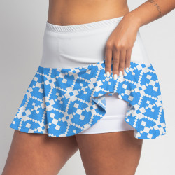 Our flounce skirt is fabulous for all activities - standard length for tennis and pickleball. Our specialized FestaFit makes this skort a must have for function and comfort. Inner shorts have lower leg band to store balls during fierce matches. Shorts have inner pocket on left side.